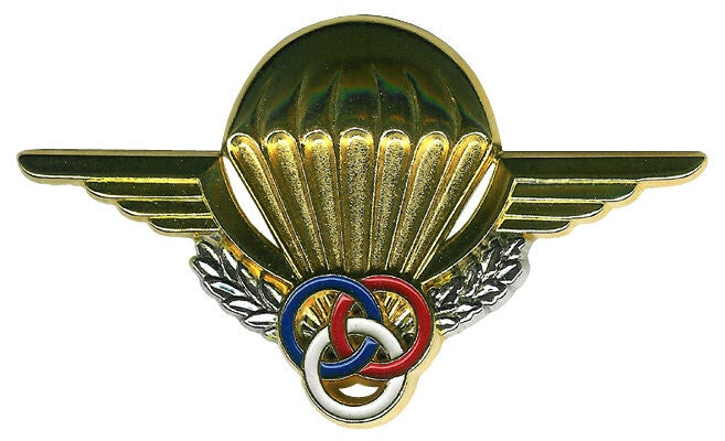 Créé le 1er juin 1946, il est aujourd’hui porté par plus de 700 000 militaires. Pour l’obtenir, il faut suivre une formation de deux semaines et six sauts. Quatre sont effectués dans des conditions dites « lisses » (sans armes et sans sac), un saut de nuit sans équipement et le dernier avec armement et gaine (saut technique). Aujourd’hui il est possible d’être breveté après cinq sauts, dont un saut technique.
